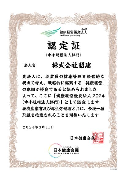 日本健康会議より、「健康経営優良法人2024(中小規模法人部門)」として認定されました。