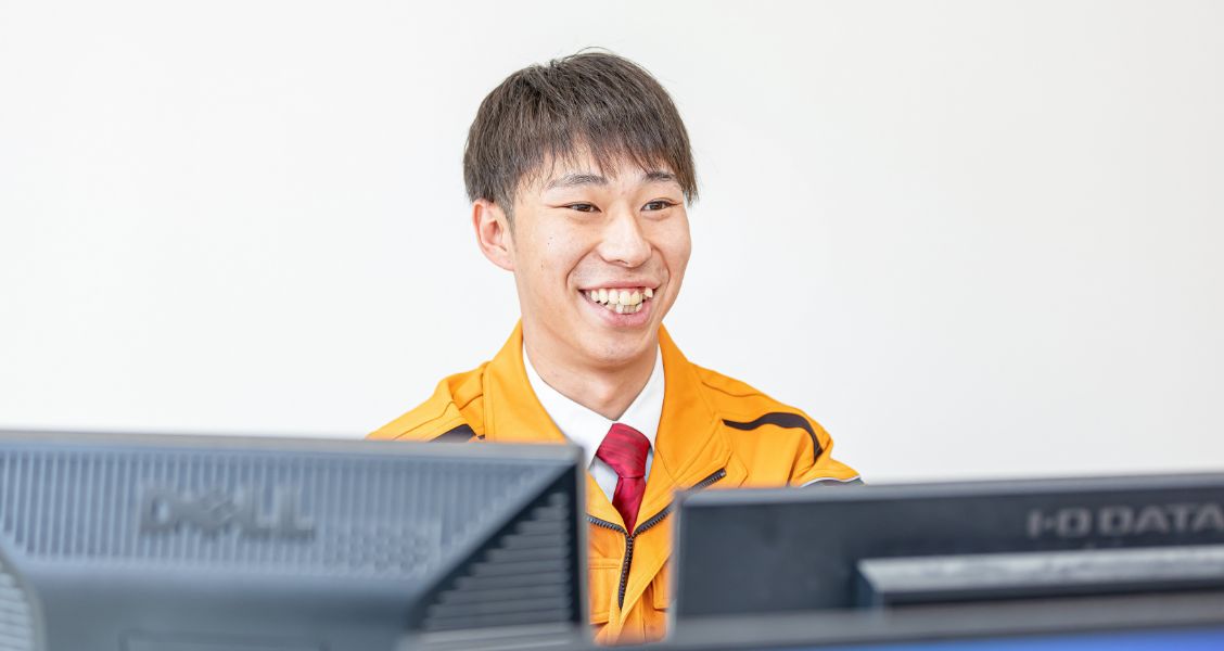 私は大阪出身なのですが、実家の近くに当社の大阪事業所があったので「昭建」という名前は以前からよく知っていました。都会でたくさんの人や建物に囲まれて育ったこともあり、将来はのんびりした街で暮らしたいと考え、「滋賀県あたりどうだろう」と何気なく調べてみたところ、大津に「昭建」があることを知りました。面接では「うちは今滋賀県しか採用していないんだけど大丈夫?」と聞かれましたが、僕としては願ったり叶ったりで(笑)落ち着いた街でゆったりと暮らしながら働いている今、本当に昭建に来てよかったと思っています。